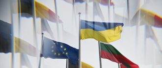 Флаг Украины и флаг с символикой Евросоюза у здания Европарламента в Страсбурге. Архивное фото