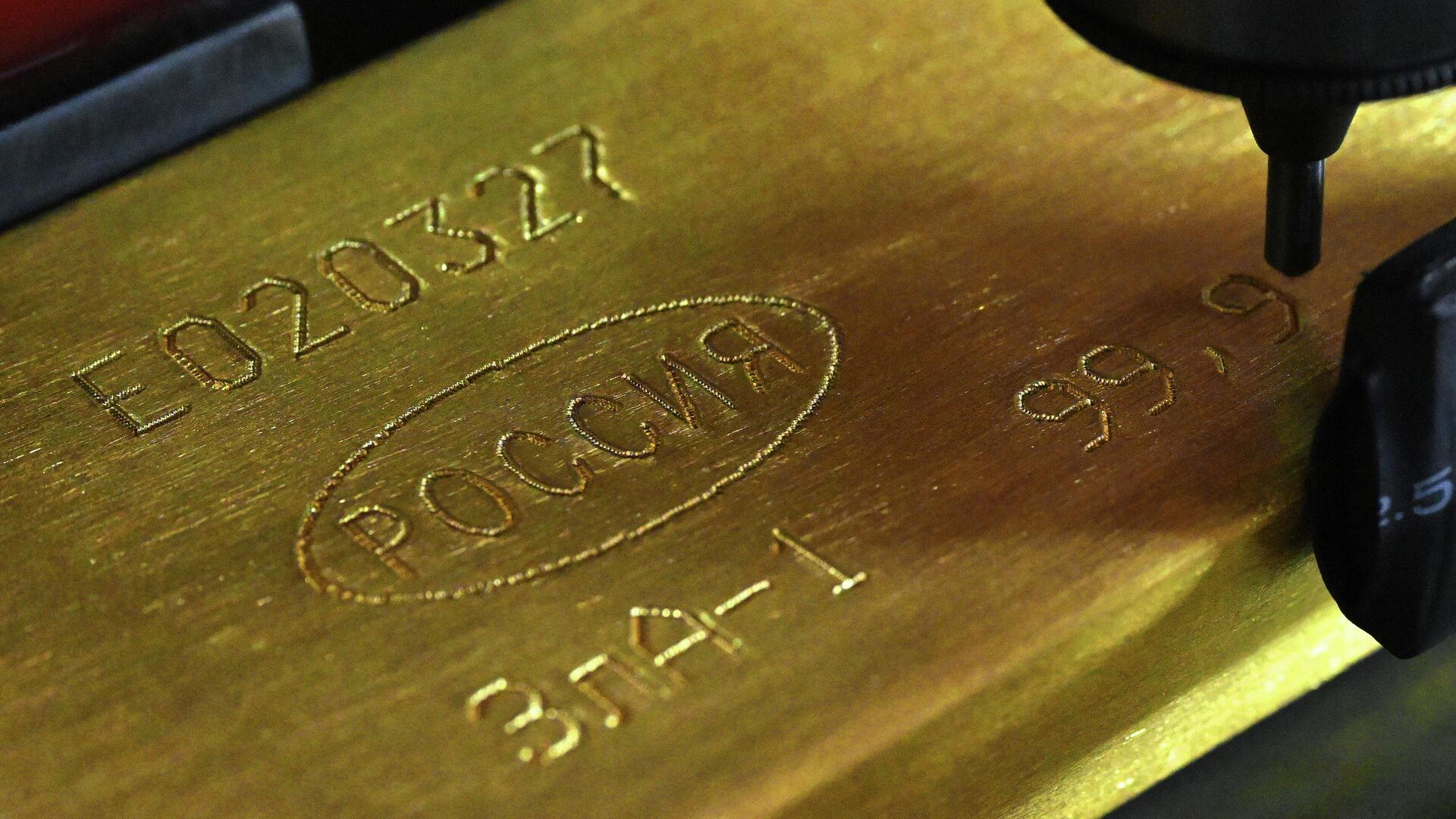 Маркировка золотого слитка высшей пробы. Архивное фото Дзен