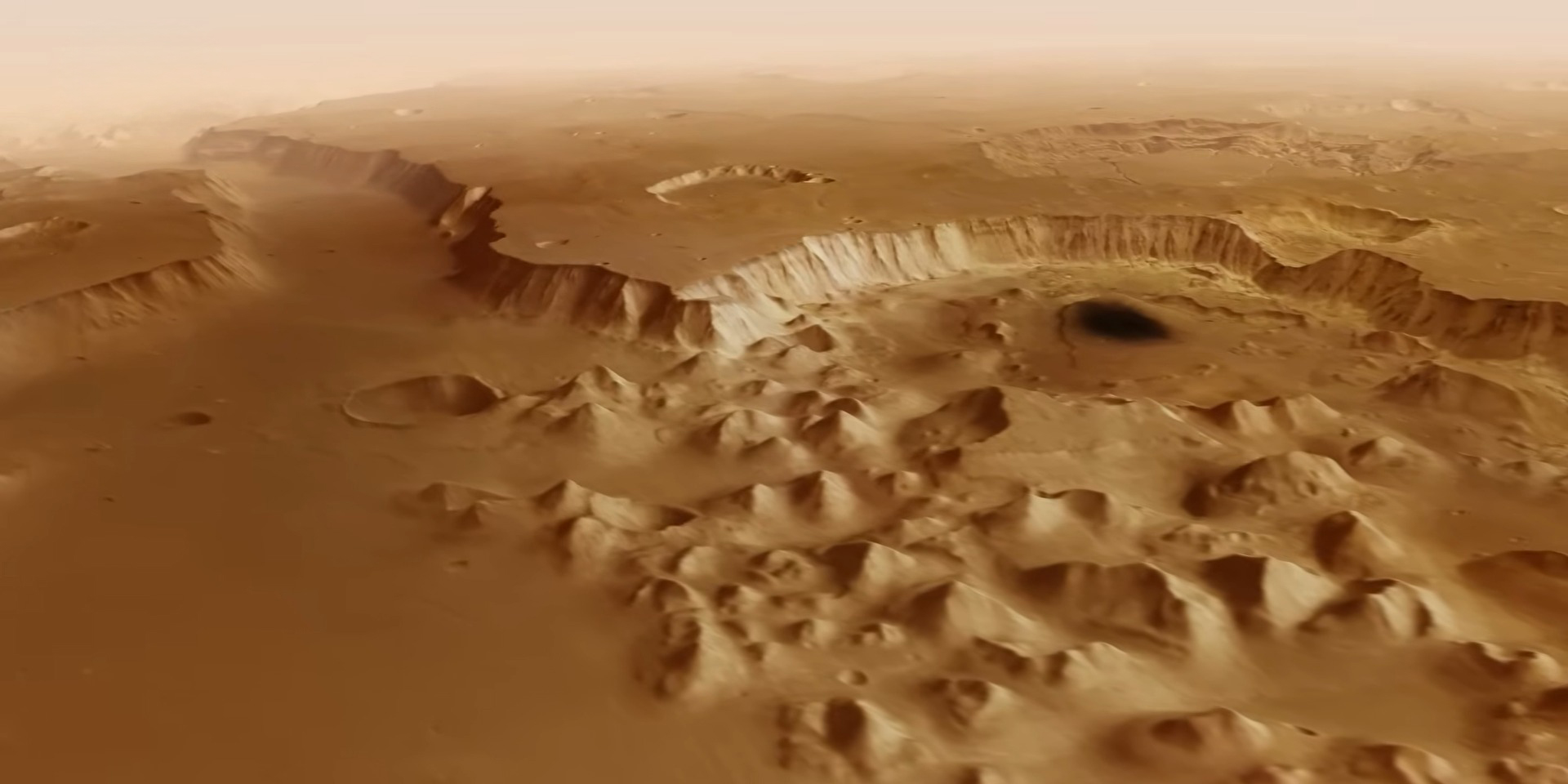 Учёные показали завораживающий пролёт над каньонами Марса
